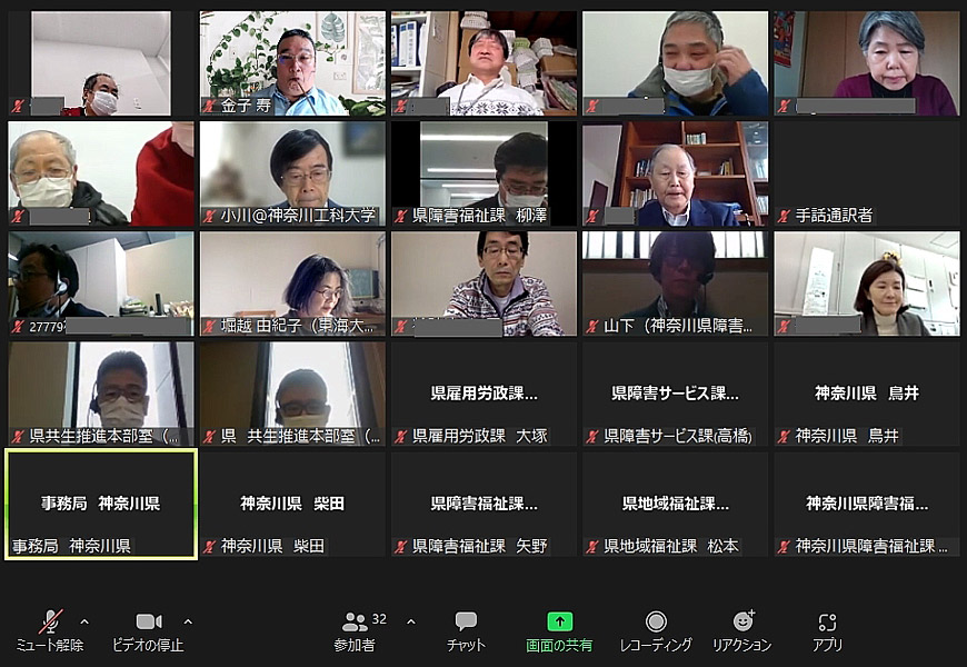「第33回 神奈川県障害者施策審議会」が、横浜市の波止場会館で開催される予定でしたが、コロナや雪の心配もあったので、急きょオンラインで行われました。