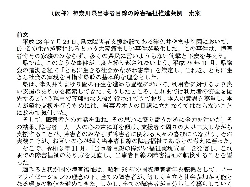 津久井やまゆり園のことや神奈川県の状況を十分に踏まえた上で、より良い条例が策定されることを願っています。