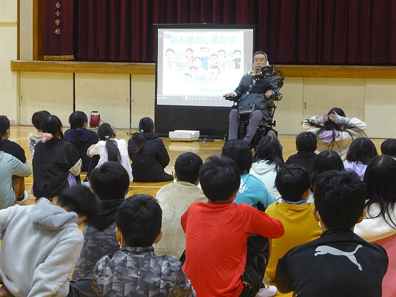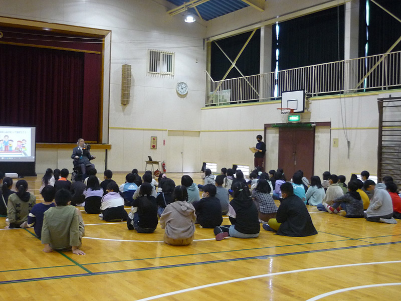 コロナで中止になっていた「福祉教室」が3年ぶりに再開され、市内の小学5年生の授業に行ってきました。